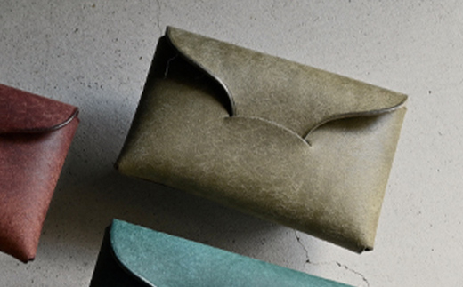 - 封筒のような プエブロレザーの名刺も入るシームレスカードケース 【グリージオ (カーキ系)】 F5J-1039