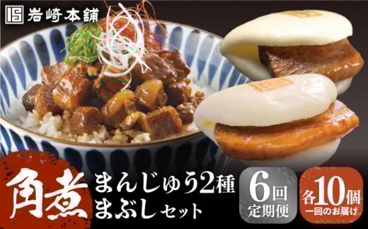 【全6回定期便】【簡易包装】 角煮3種 計30個(長崎角煮まんじゅう10個/大とろ角煮まんじゅう10個/角煮まぶし10袋) 長与町/岩崎本舗 [EAB039] 角煮まんじゅう 岩崎 岩崎本舗 定期 定期便