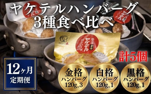 - 【定期便 全12回】格之進\超人気!TVでも紹介/ヤケテルハンバーグ「金格・白格・黒格」3種セット 600g〈120g×5個〉 ハンバーグ 個包装 惣菜 おかず お弁当 湯煎 湯せん 温めるだけ 調理済 簡単調理 ハンバーグ湯煎 冷凍ハンバーグ 返礼品 国産牛 黒毛和牛 お取り寄せ ギフト 人気 岩手県一関市