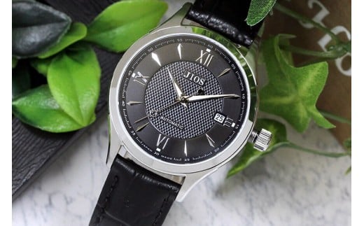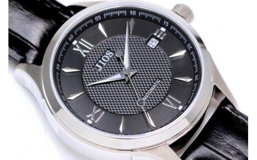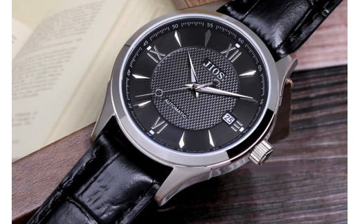 - JIOS SEIRAN 日本製 自動巻き腕時計 メンズ 男性用 革ベルト ブランド ドレスウォッチ ジオス 黒文字盤 × シルバー針 クロコ型押しベルト(黒)