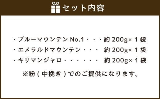 コーヒー豆 3種類 セット 【粉】 (マウンテンセット) 珈琲 コーヒー マウンテン 厳選 岐阜県 美濃加茂市