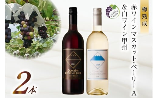 ワイン 赤 赤ワイン マスカット・ベーリーA 白ワイン 甲州 各750ml 計2本 1500ml 山梨ワイン 果実酒 飲み比べ ワインセット ぶどう ブドウ マスカット 山梨 国産 酒 パーティー 赤白飲み比べ セット 小さなワイナリー 自社農園 ぶどう ドメーヌ [Creation farm 山梨県 韮崎市 20743663]