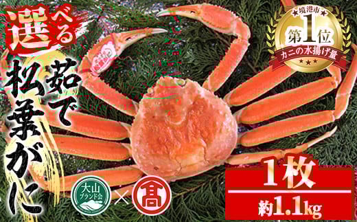 <2025年11月~2026年3月上旬発送予定>茹で松葉がに(1枚・約1.1kg)【T-DI1】【大山ブランド会】