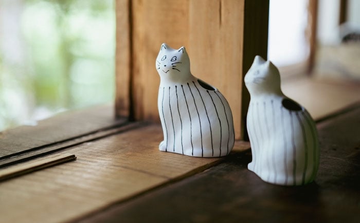 - 【波佐見焼】zen to ひがし ちか 花器「愛 編む 磁器猫」線猫 1点【中善】 [YE52]