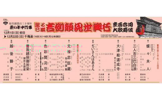 - 【3等席~申込可能】2024南座 顔見世興行 1名様分鑑賞申込券