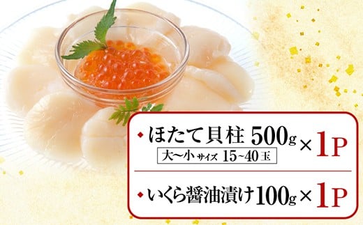 いくら醤油漬け100g×2P、ほたて貝柱500g×2P