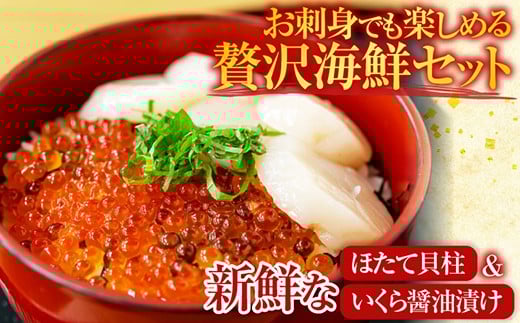 【年内配送可】根室海鮮市場<直送>刺身用ほたて貝柱200g・いくら醤油漬け(鮭卵)70g×2P A-28212