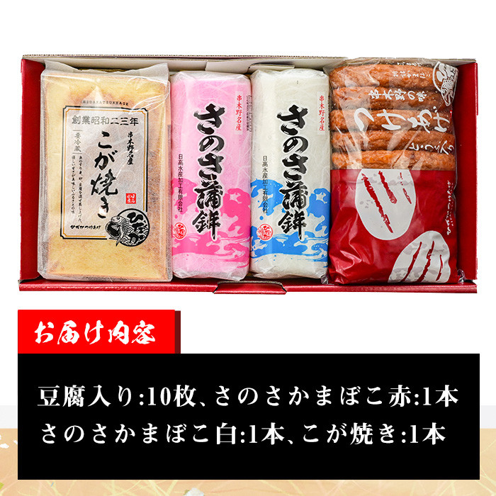 日高水産 「さつま揚げ」・「さのさかまぼこ」・「こが焼き」の詰め合わせ <串木野セット4>鹿児島県産 串木野 冷蔵 串木野名物 地酒と豆腐たっぷりの薩摩揚げ つけ揚げ つけあげ 食べ比べ【A-1357H】