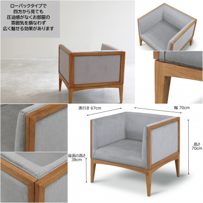 - Monac 1人掛け ソファ<グレー/栴檀>【1579355】