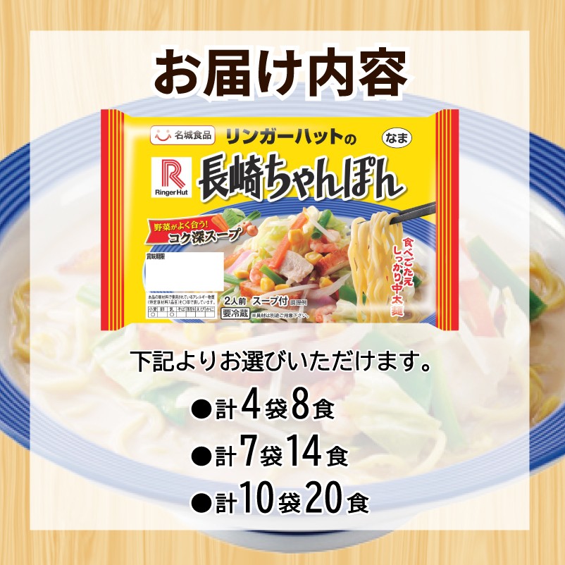 リンガーハット 長崎 ちゃんぽん 選べる 8食 ~ 20食 詰め合わせ ( 麺 生麺 人気 おすすめ スープ 大容量 冷蔵 麺類 豚骨 とんこつ 魚介 野菜 小麦 ギフト プレゼント 自宅用 ごはん 夜ご飯 ) 下関 山口