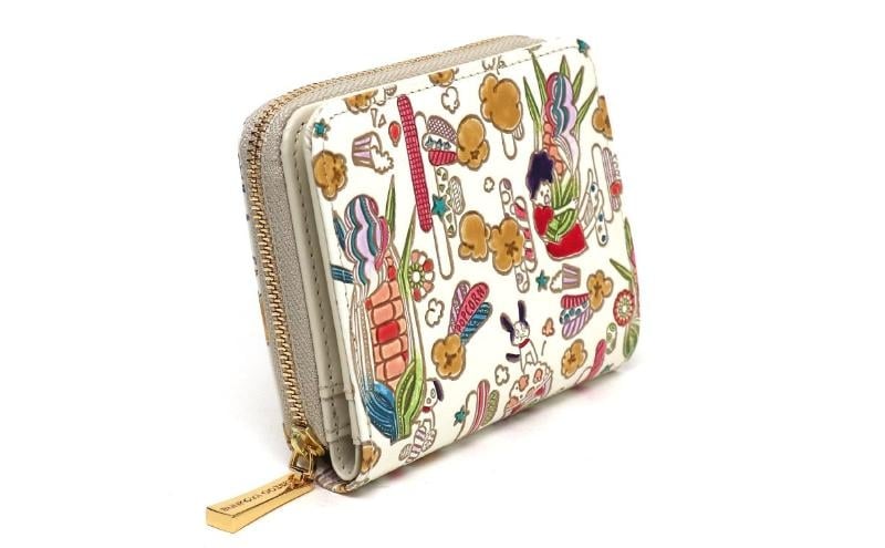 【文庫屋大関】二つ折りファスナーミニ財布 弾けるもろこしガール【皮革工芸品】財布 二つ折り 小物 お札 カード 小銭 コンパクト 牛革 手作り 日本製 墨田区 東京都 [№5619-2066]
