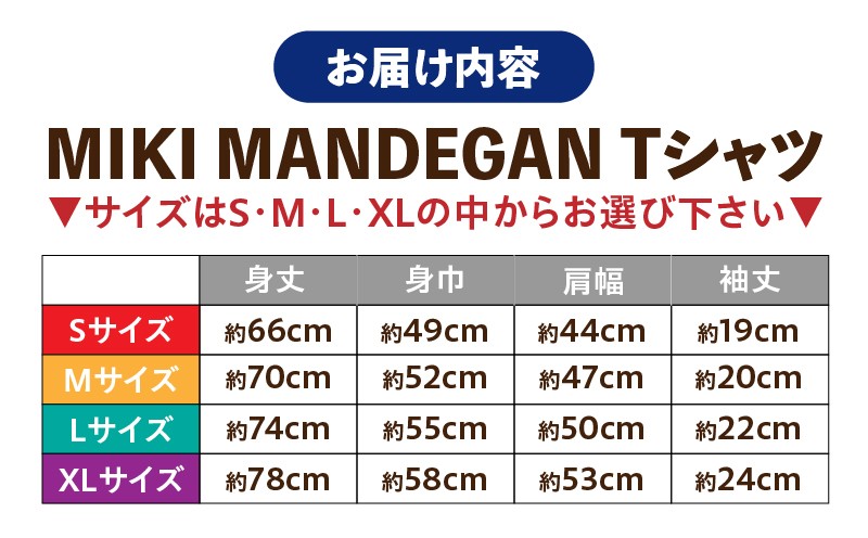 【選べるサイズ】MIKI MANDEGAN Tシャツ | 夏服 半袖 Tシャツ ロゴ 柄 シンプル イベント 地域の祭り 地域応援 獅子舞 お祭り 香川県 三木町 |_mk158-010-sku