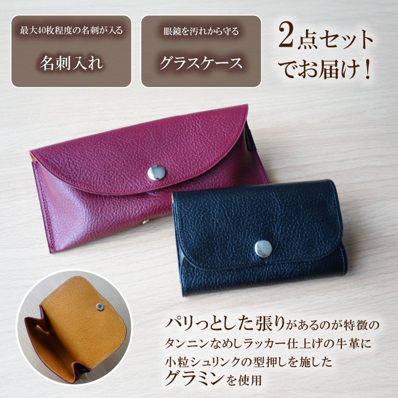 - 【色が選べる】靴職人が作る名刺入れとグラスケースのセット 【雑貨 牛革 ギフト プレゼント 贈答】