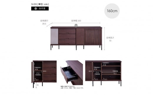 AGUERO アゲロ 160cm サイドボード <全4色> 【モーブル】【大川家具】