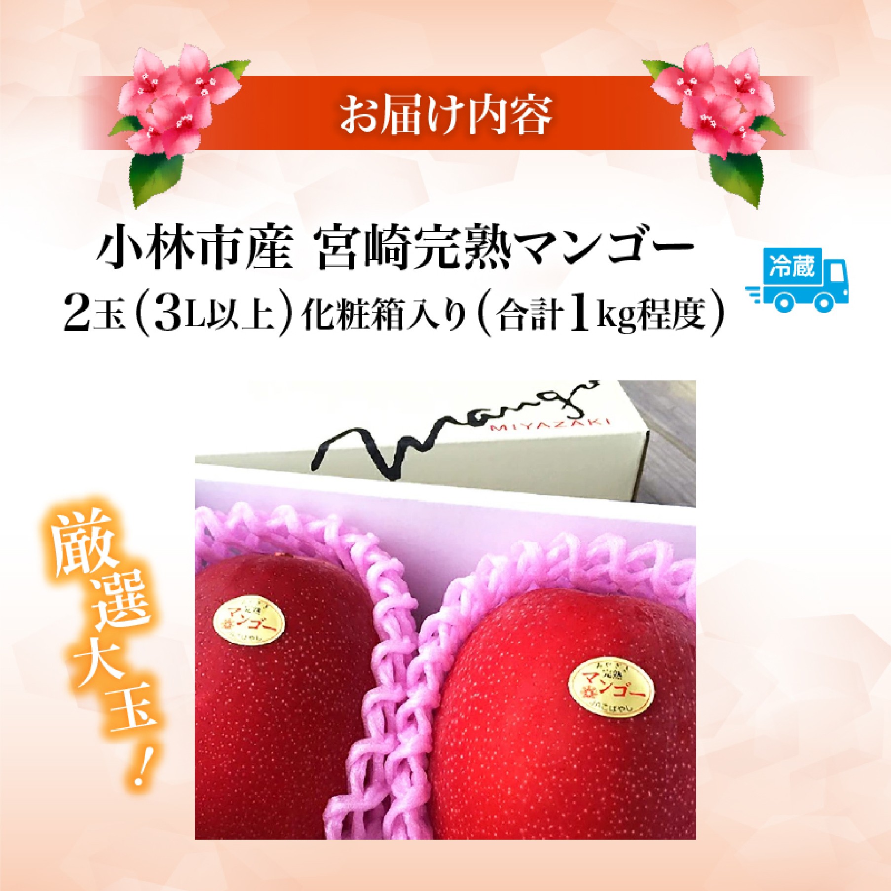 - 【数量限定・先行受付】厳選大玉宮崎完熟マンゴー 2玉 計1kg程度(フルーツ 2026 マンゴー 先行予約 完熟マンゴー 宮崎 小林市 果物 人気)