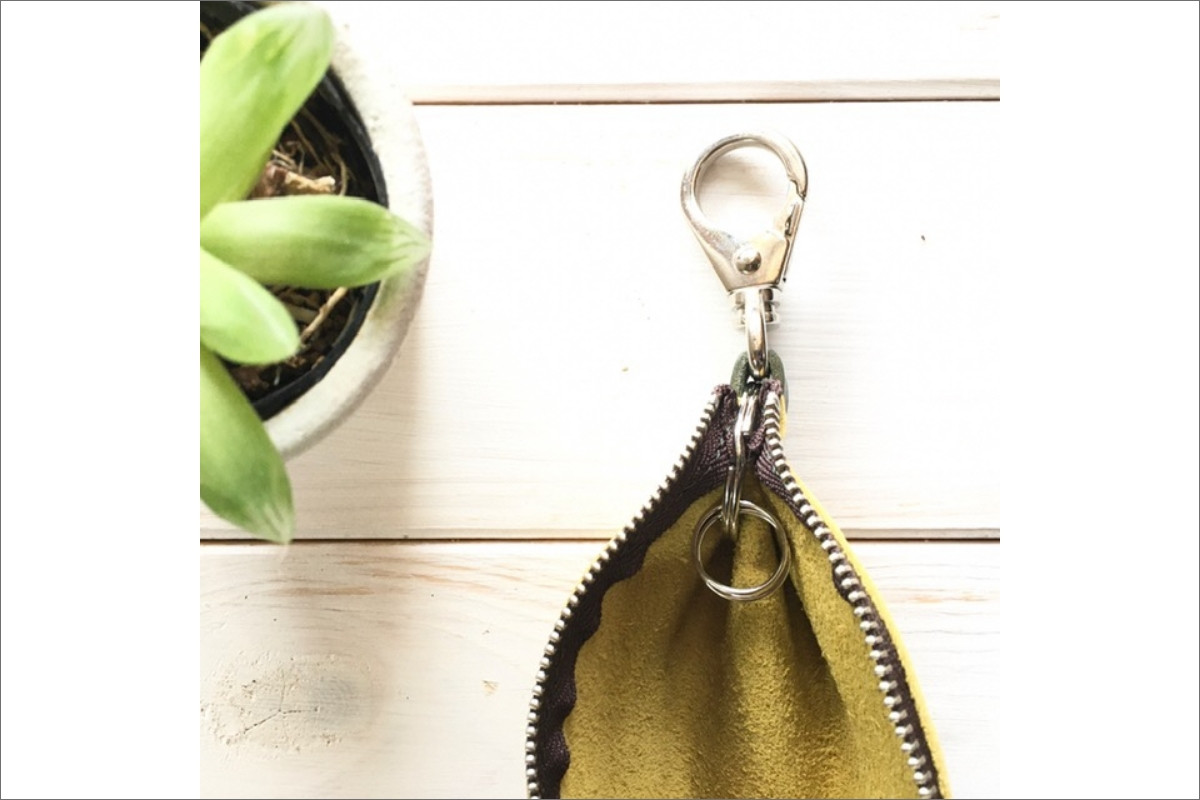 - バナナキーケース(ヌバックイエロー) 革小物/キーケース/鍵/キー/ケース/革/レザー/牛革/ヌバック/小物/おしゃれ/ファスナー/ナスカンLC00004