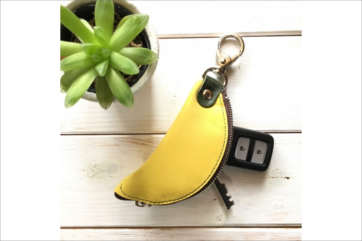 バナナキーケース(ヌバックイエロー) 革小物/キーケース/鍵/キー/ケース/革/レザー/牛革/ヌバック/小物/おしゃれ/ファスナー/ナスカンLC00004