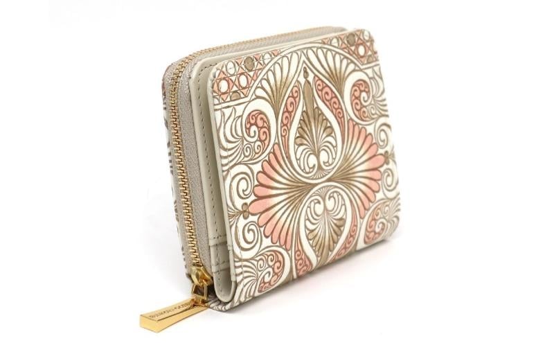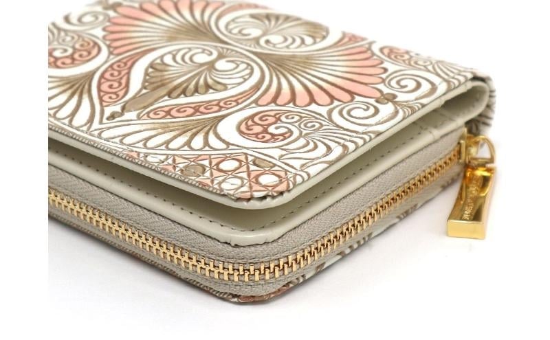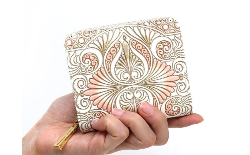 - 【文庫屋大関】二つ折りファスナーミニ財布 ロカイユ<ベビーピンク>【皮革工芸品】財布 二つ折り 小物 お札 カード 小銭 コンパクト 牛革 手作り 日本製 墨田区 東京都 [№5619-2049]