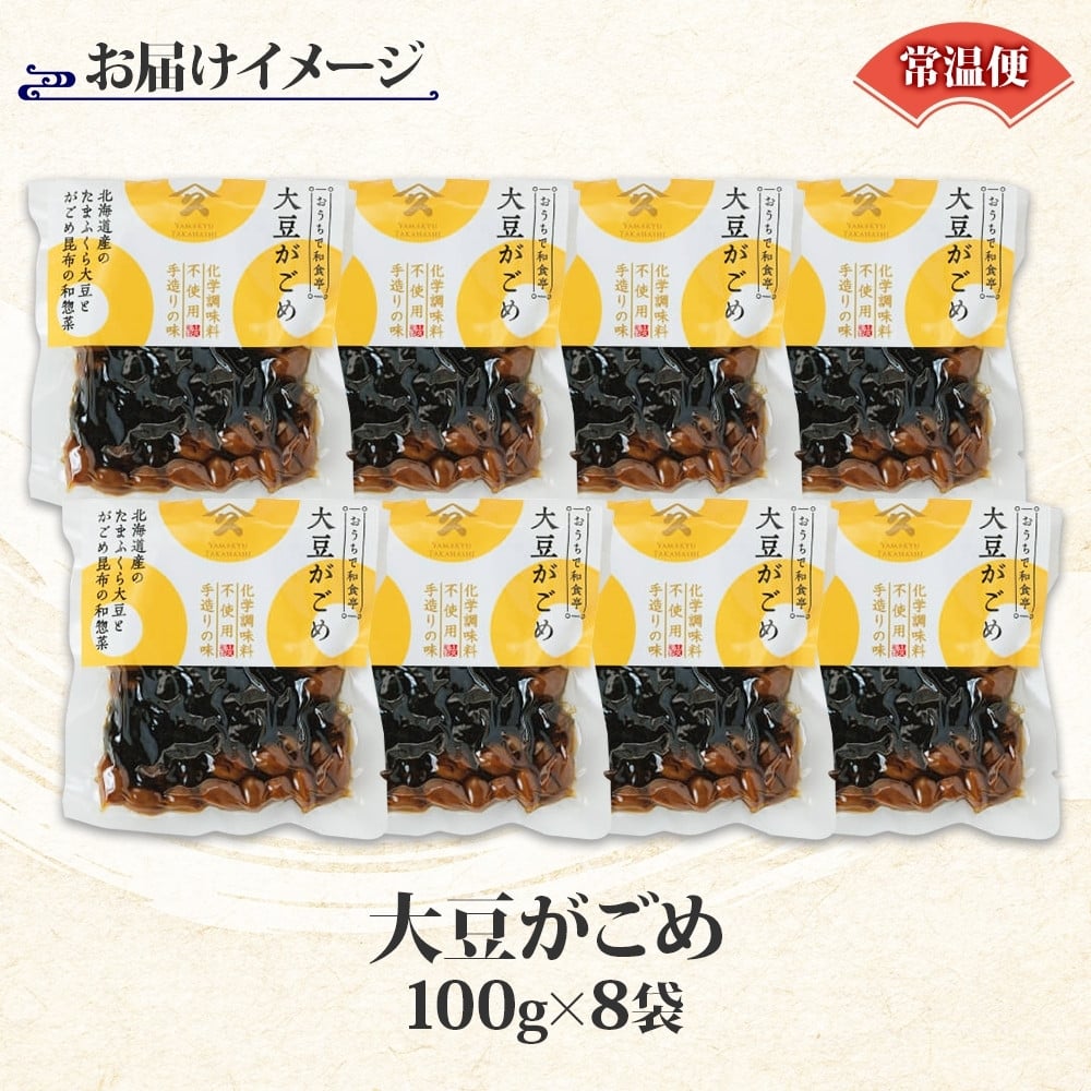 - 北海道 大豆がごめ 100g 8袋 がごめ こんぶ 昆布 たまふくら 大豆 佃煮 北海道産 ご飯 お酒 お供 惣菜 おかず 人気 定番 和食 お取り寄せ ギフト 送料無料 常温 タカハシ食品 函館市_HD141-025