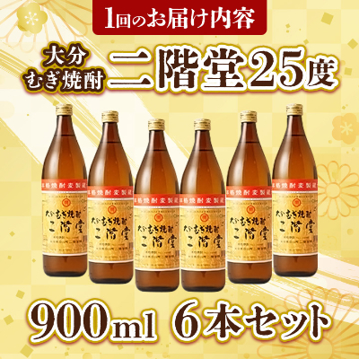 <毎月定期便>大分むぎ焼酎二階堂(25度(900ml)6本) 全6回【4007340】