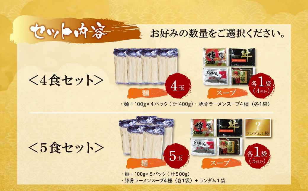 - 選べる!博多とんこつラーメン4~5食 4種類の博多の福岡産スープ 豚骨 ラーメン 博多 福岡 簡単 本格 W86