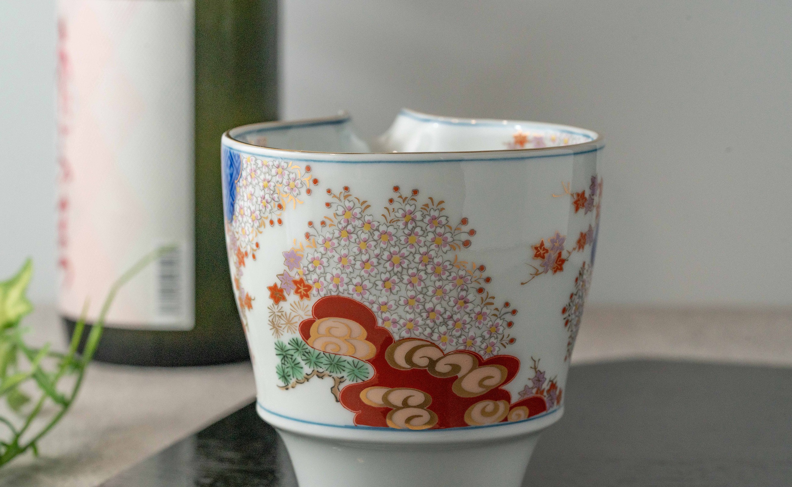 - 【セット】 有田焼 日本酒 酒器〈春秋文〉3点セット 片口1点 グラス2点 賞美堂本店