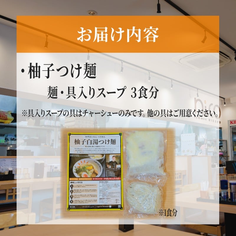 - 柚子 つけ麺 3食セット 鶏 白湯 拉麺 らーめん 鶏 にっこう ゆず こしょう 胡椒 柚子 つけ汁 全粒粉 中太 麺 冷凍 スープ付 チャーシュー ラーメンにっこう ご当地ラーメン ラーメンスープ 食べログ百名店 生 生麺 生メン 彦根 滋賀
