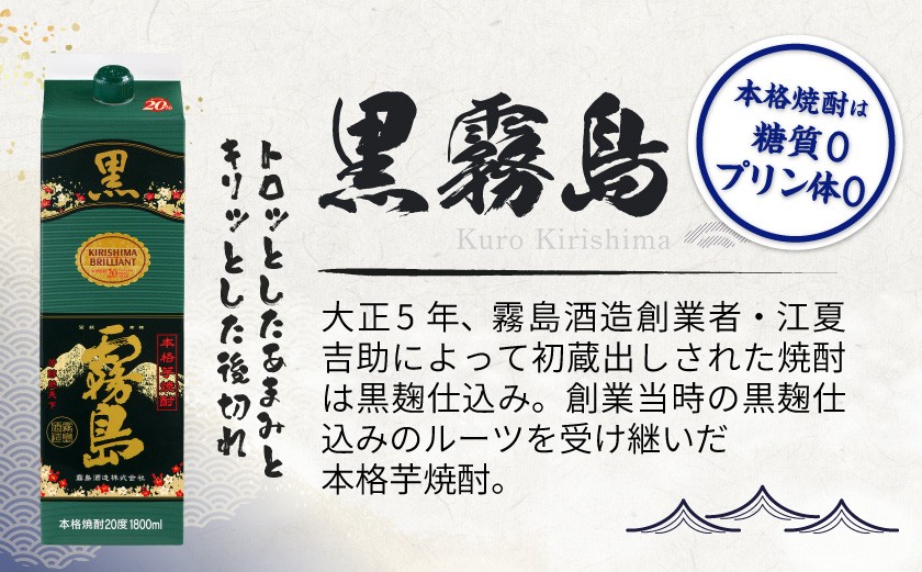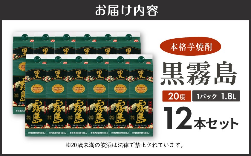 - 黒霧島パック(20度)1.8L×12本_AM-3802_(都城市) 黒霧島 霧島酒造 20度 1.8L 12本セット 一升パック 芋焼酎 (都城市) 黒霧島 霧島酒造 20度 1.8L 12本セット 一升パック 芋焼酎