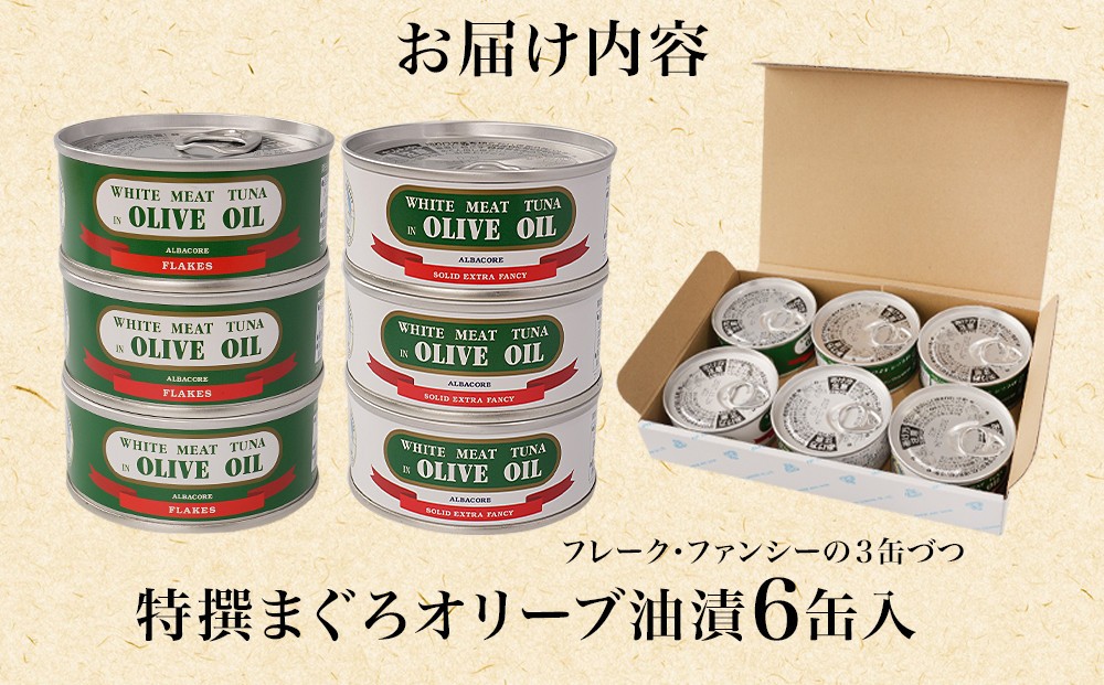 - AN004【315】≪最短2日以内発送≫特撰まぐろオリーブ油漬詰合せ 6缶入(ファンシー・フレークセット)静岡一番人気 素材重視のツナ缶のおいしさ 熟成 高級まぐろ ツナ缶 ツナ マグロ 鮪 缶詰 フレーク 缶詰 常温 魚貝類 食品 加工食品 静岡 ギフト 詰合せ 魚介類 お中元 お歳暮 プレゼント 高級 贈答用 お取り寄せ グルメ ストック食材 たんぱく質 キャンプ オリーブオイル
