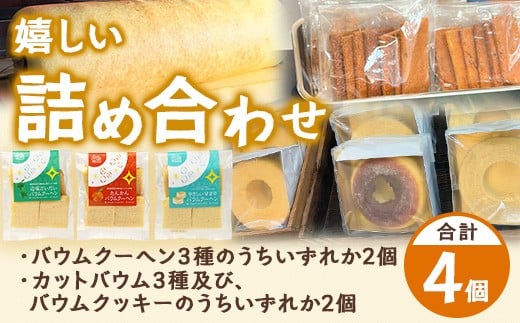 - 【訳あり】焼き菓子詰め合わせセット ランダム 4個入り SH-2 | バウムクーヘン バームクーヘン 菓子 おかし 焼き菓子 詰め合わせ スイーツ デザート カットバウム ラスク クッキー 食品 訳あり おすすめ 柑橘系 プレーン たんかん 辺塚だいだい