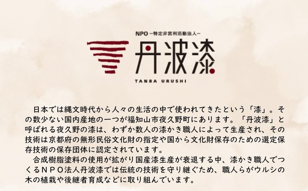 【思いやり型返礼品】ウルシの木の植樹1本分~伝統技術「丹波の漆かき」へのご支援 FCTMB001
