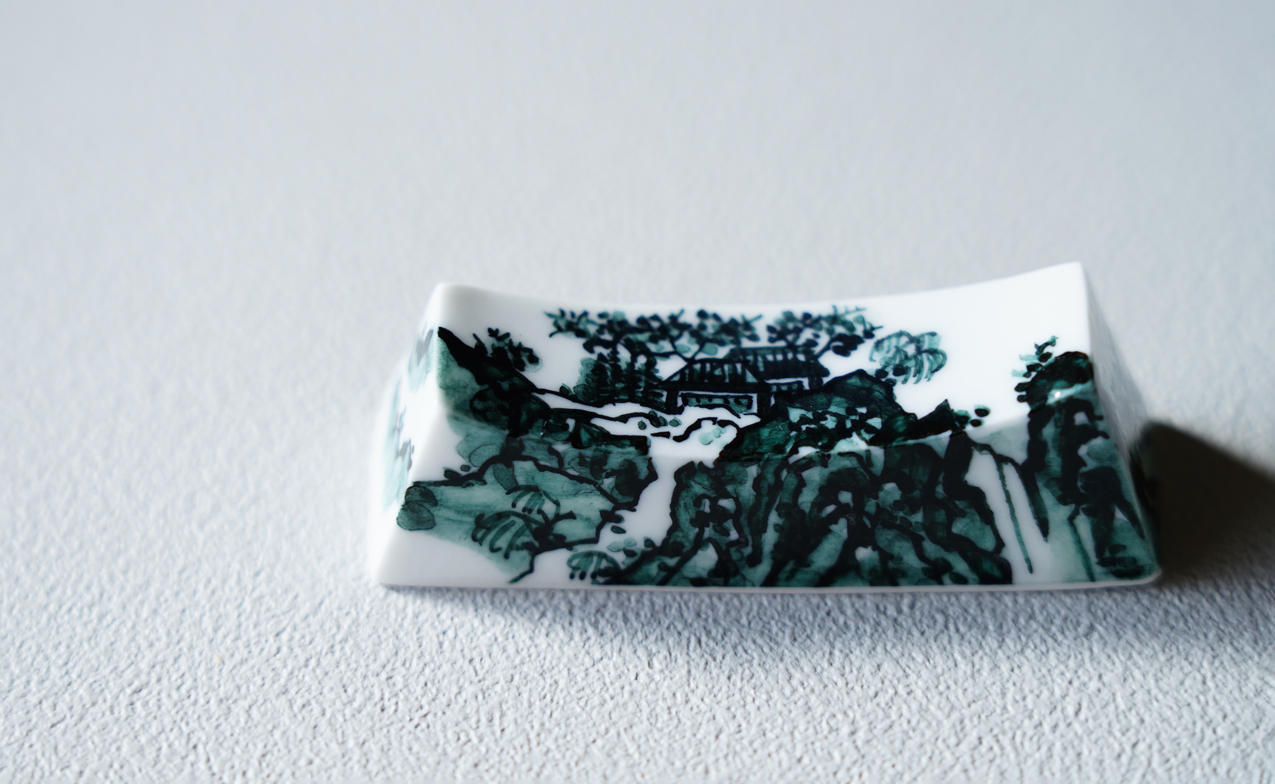 有田焼 染付 黒山水絵 箸置き 2個セット【起山窯】食器 箸置き 箸置 はしおき 2個 セット ペア 山水絵 A18-160