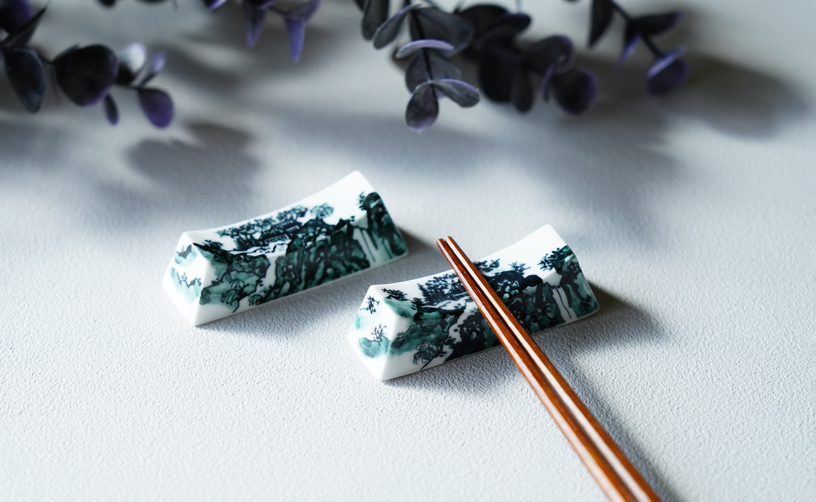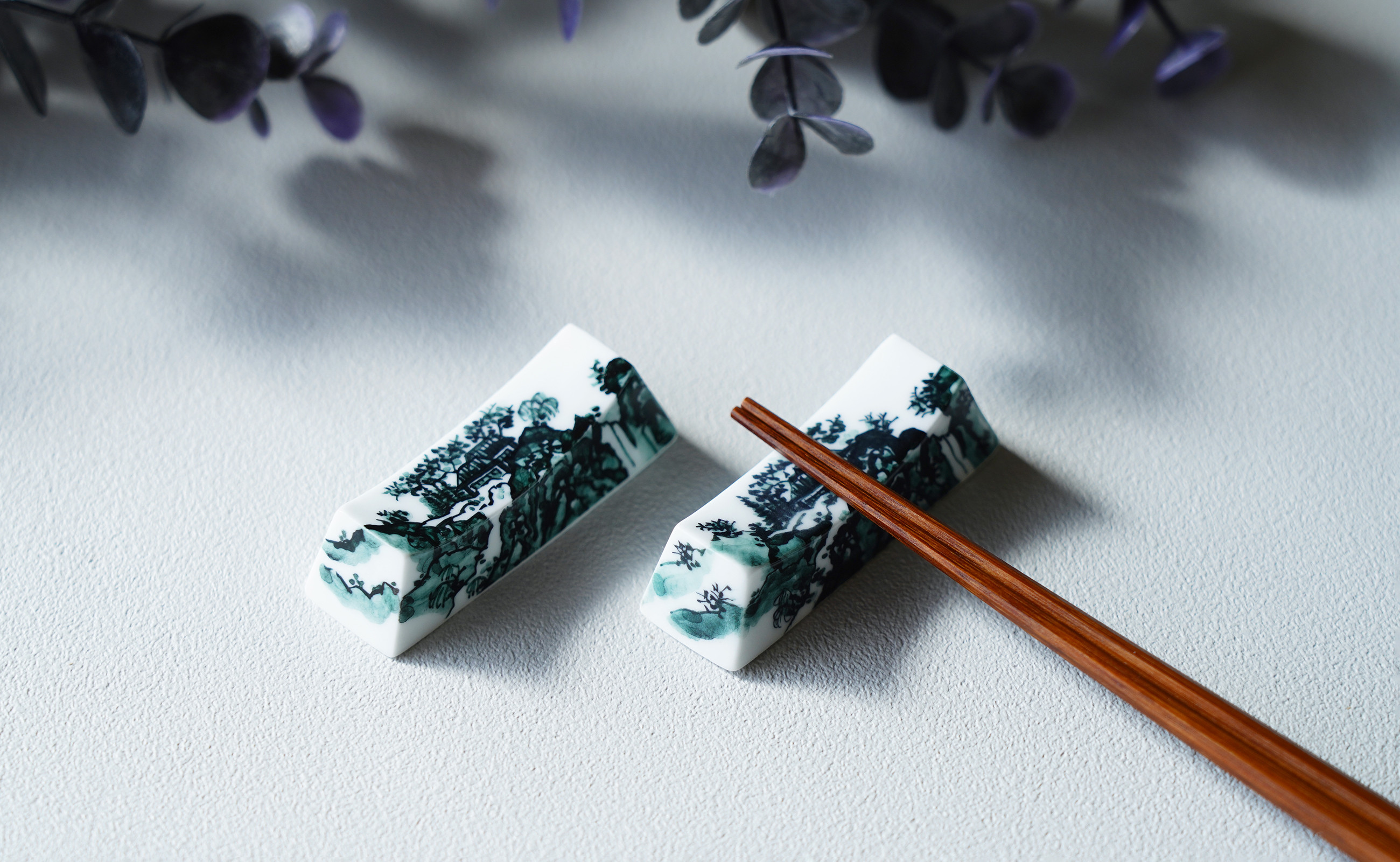 - 有田焼 染付 黒山水絵 箸置き 2個セット【起山窯】食器 箸置き 箸置 はしおき 2個 セット ペア 山水絵 A18-160