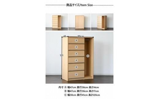 - 大川家具 チェスト 幅90cm ハンガーラック 吊り下げ収納 引出し 6段【3色展開】