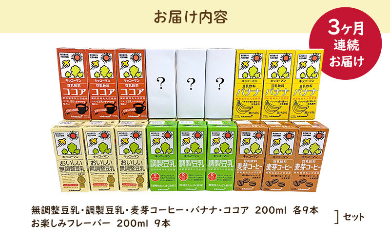 キッコーマン お楽しみ付き 豆乳満喫便 200ml 54本セット【3ヶ月連続】|加工食品 乳飲料 ドリンク 美容 ※離島への配送不可