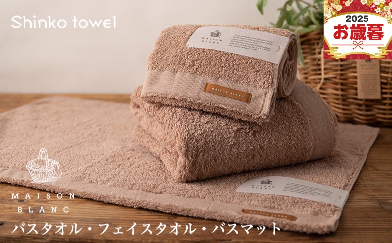 G2683o 【お歳暮対応】MAISON BLANC バスタオル1枚 フェイスタオル1枚 バスマット1枚 テラコッタ【ギフト 贈り物 TVで紹介!】