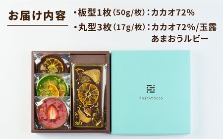 【カカオ72%】糸島ドライフルーツチョコレート3種4個セットBOX《糸島》【itoshimacco《㈱やました》】 [ARJ020] チョコレート フルーツ カカオ 玉露 あまおう バレンタイン ギフト チョコ