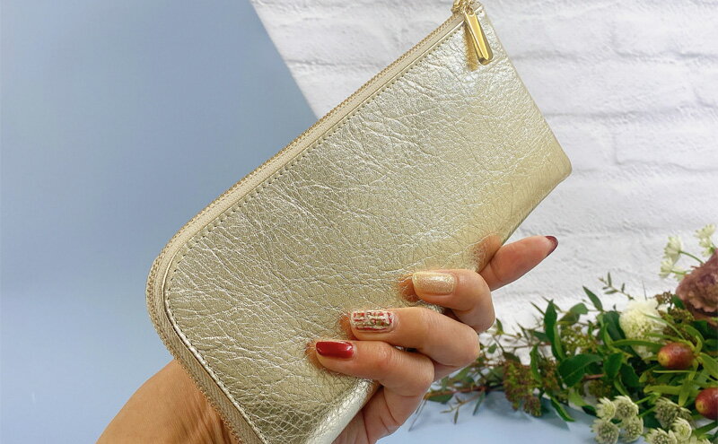 - 【ふるさと納税】長財布 レディース L字ファスナー シャンパンゴールド 財布 14枚カードポケット レザー 革 本革 牛革 革製品 薄型 薄い 軽い 大容量 L字 レザー財布 レディース財布 牛革財布 金色財布 カード入れ 多い お財布 金色 日本製 東京 東京都 墨田区