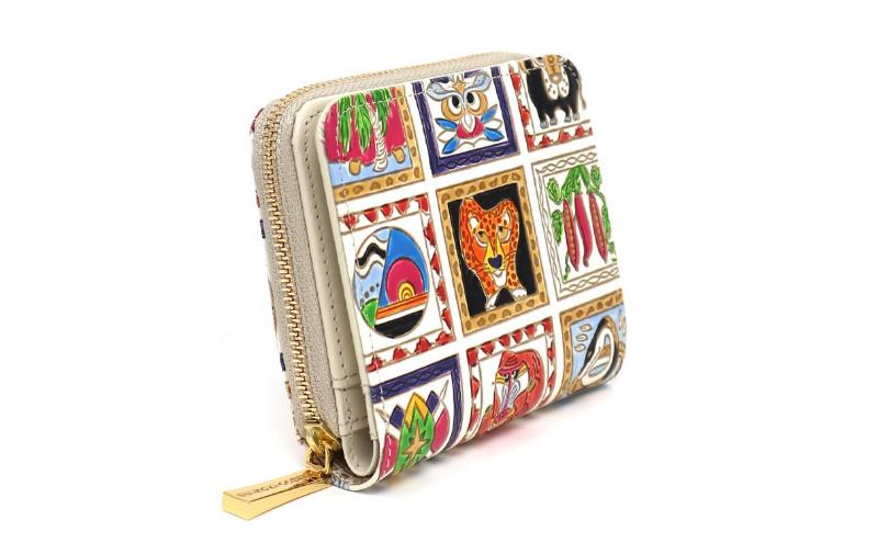 【文庫屋大関】二つ折りファスナーミニ財布 アフリカ【皮革工芸品】財布 二つ折り 小物 お札 カード 小銭 コンパクト 牛革 手作り 日本製 墨田区 東京都