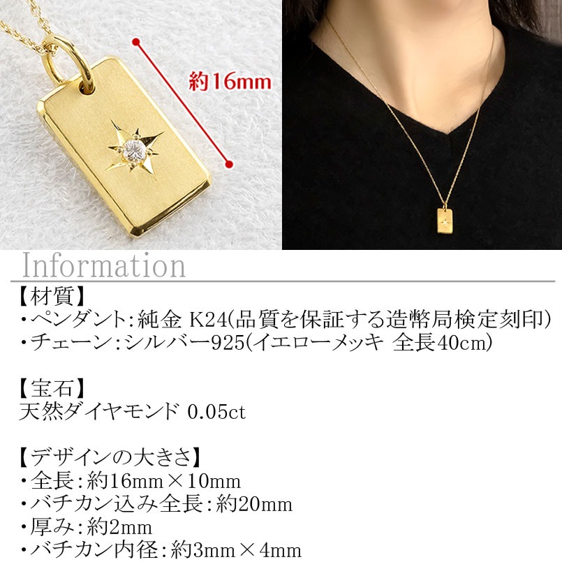 - 純金 24金 ペンダントトップ ダイヤモンド K24 プレート インゴット型 鍛造 ネックレス 大きめ 造幣局検定刻印 ダイヤ 一粒 金 シンプル 24k ジュエリー 人気 普段 使い250321200dk24 SWAA252