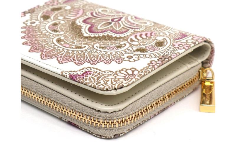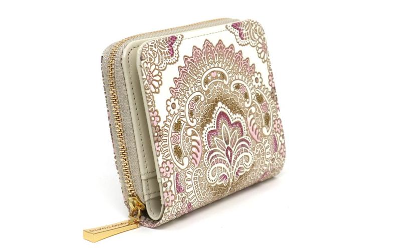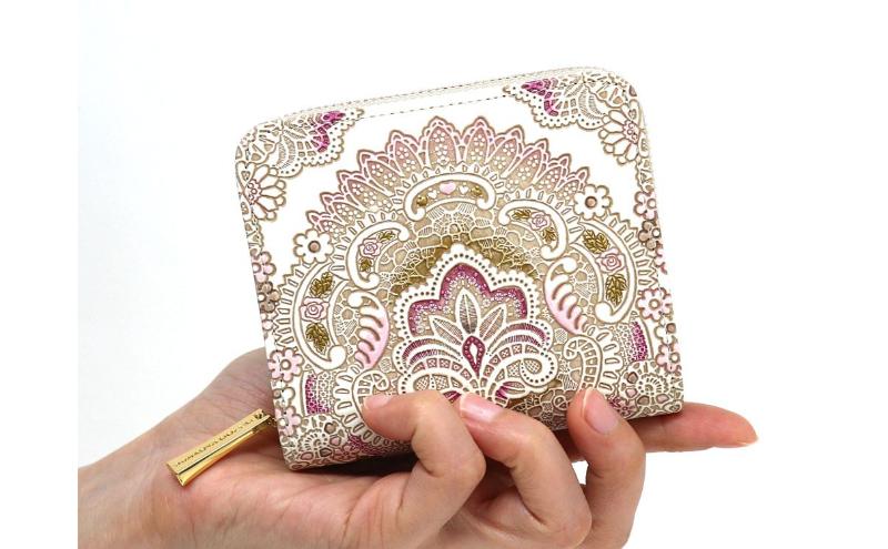 【文庫屋大関】二つ折りファスナーミニ財布 アンティークレース<ピオニー>【皮革工芸品】財布 二つ折り 小物 お札 カード 小銭 コンパクト 牛革 手作り 日本製 墨田区 東京都