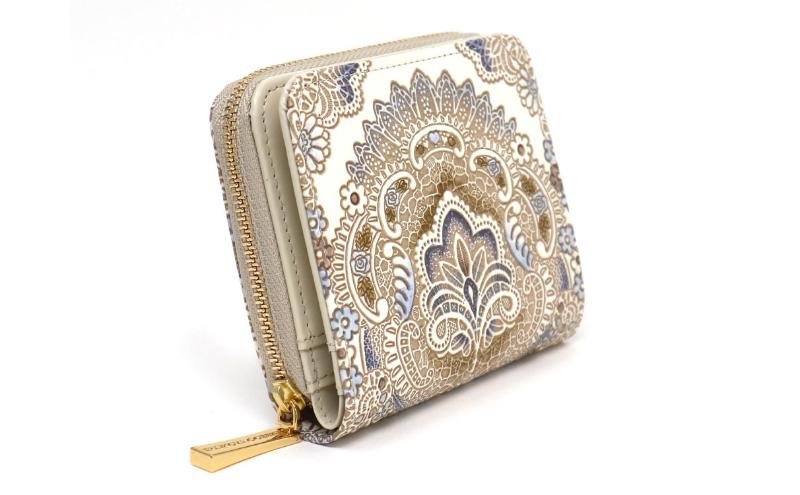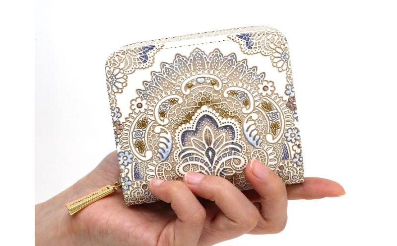 - 【文庫屋大関】二つ折りファスナーミニ財布 アンティークレース<ビオラ>【皮革工芸品】財布 二つ折り 小物 お札 カード 小銭 コンパクト 牛革 手作り 日本製 墨田区 東京都