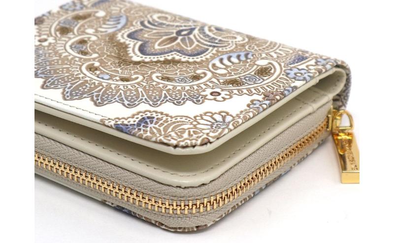 【文庫屋大関】二つ折りファスナーミニ財布 アンティークレース<ビオラ>【皮革工芸品】財布 二つ折り 小物 お札 カード 小銭 コンパクト 牛革 手作り 日本製 墨田区 東京都