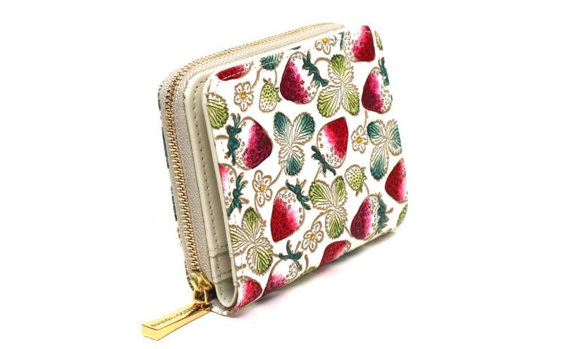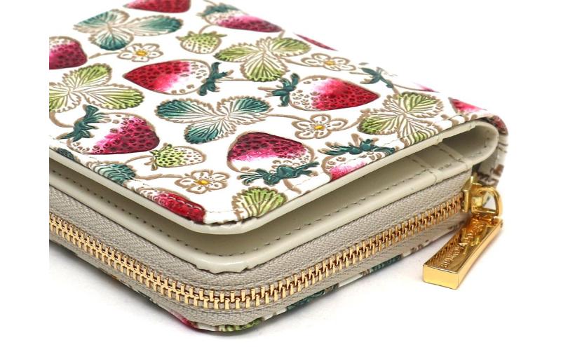 【文庫屋大関】二つ折りファスナーミニ財布 いちご【皮革工芸品】財布 二つ折り 小物 お札 カード 小銭 コンパクト 牛革 手作り 日本製 墨田区 東京都