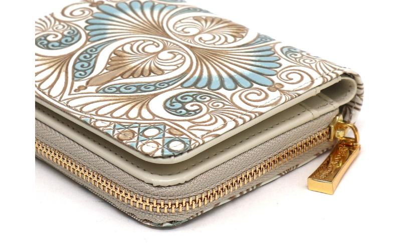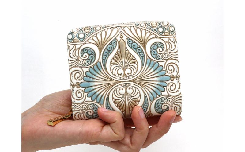 【文庫屋大関】二つ折りファスナーミニ財布 ロカイユ<ブルーグレー>【皮革工芸品】財布 二つ折り 小物 お札 カード 小銭 コンパクト 牛革 手作り 日本製 墨田区 東京都