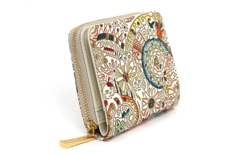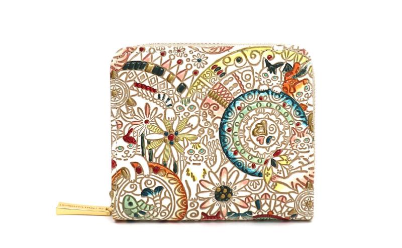 【ふるさと納税】【文庫屋大関】二つ折りファスナーミニ財布 かくれんぼ猫【皮革工芸品】財布 二つ折り 小物 お札 カード 小銭 コンパクト 牛革 手作り 日本製 墨田区 東京都 お届け:発送可能時期より順次配送