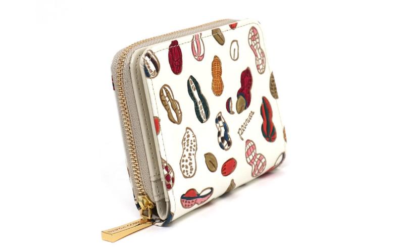 【文庫屋大関】二つ折りファスナーミニ財布 ピーナッツ【皮革工芸品】財布 二つ折り 小物 お札 カード 小銭 コンパクト 牛革 手作り 日本製 墨田区 東京都