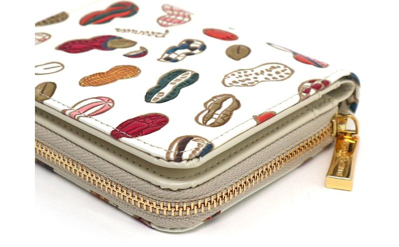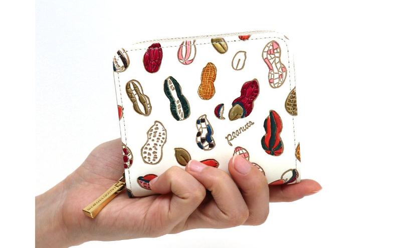 - 【文庫屋大関】二つ折りファスナーミニ財布 ピーナッツ【皮革工芸品】財布 二つ折り 小物 お札 カード 小銭 コンパクト 牛革 手作り 日本製 墨田区 東京都