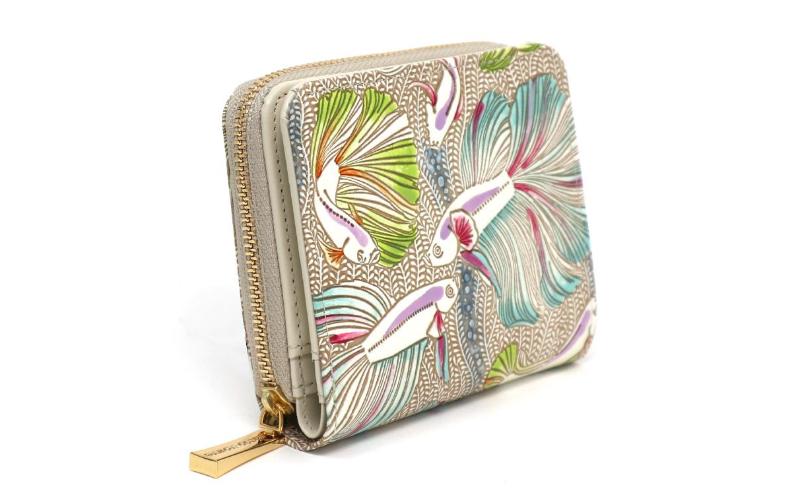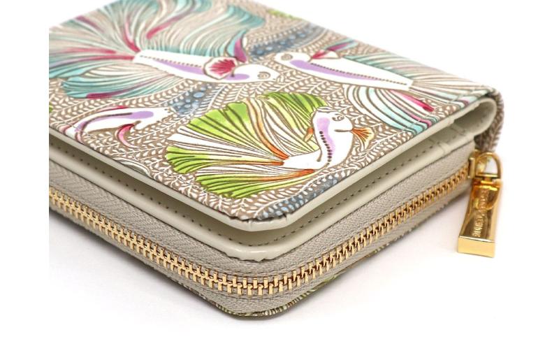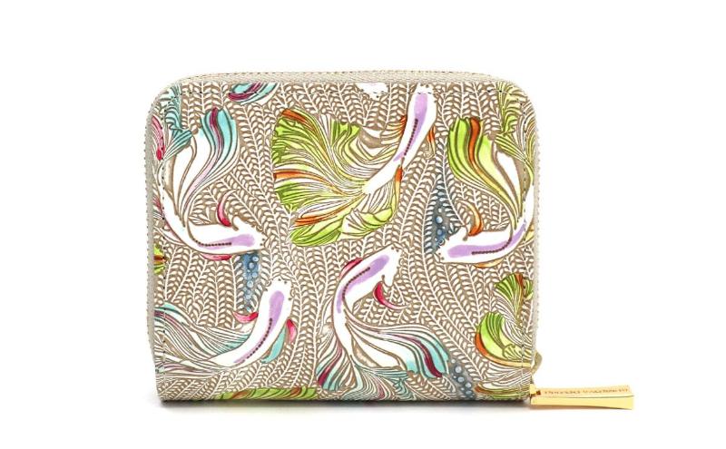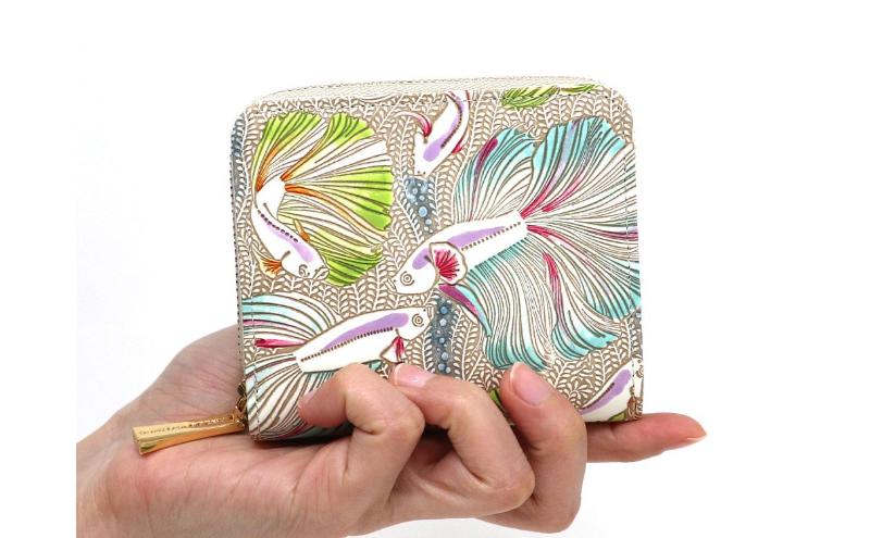 - 【文庫屋大関】二つ折りファスナーミニ財布 ラビリンスフィッシュ<グリーン>【皮革工芸品】財布 二つ折り 小物 お札 カード 小銭 コンパクト 牛革 手作り 日本製 墨田区 東京都