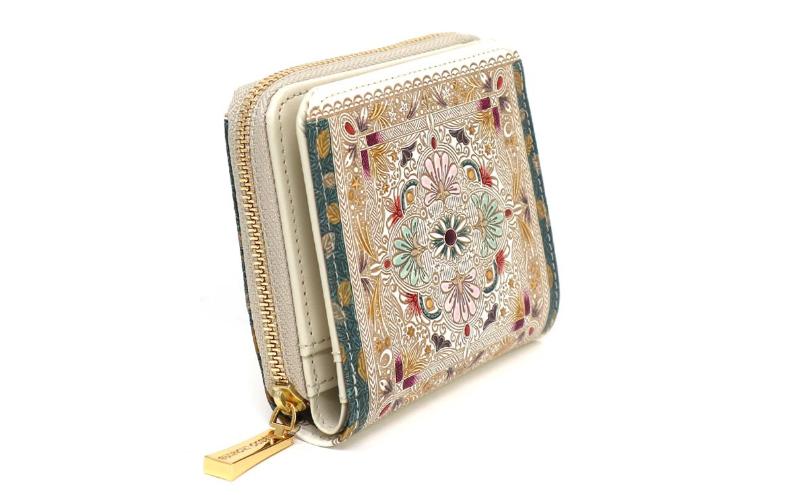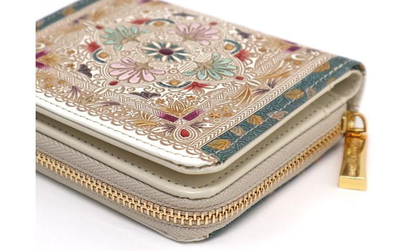 【文庫屋大関】二つ折りファスナーミニ財布 黄金のタピ【皮革工芸品】財布 二つ折り 小物 お札 カード 小銭 コンパクト 牛革 手作り 日本製 墨田区 東京都